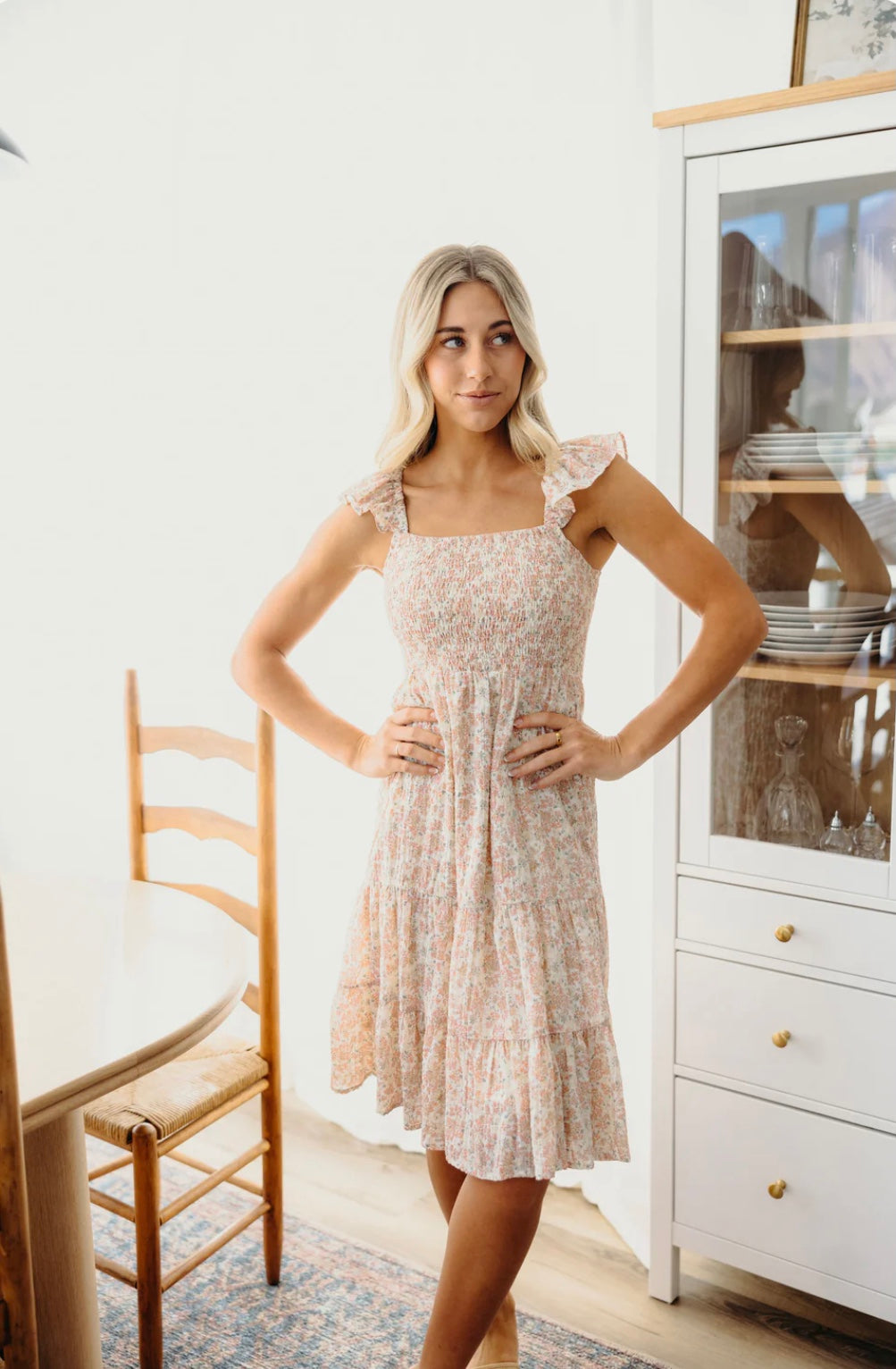 Floral Print Cropped Bubble Pullover w/ Keyhole Button Closure