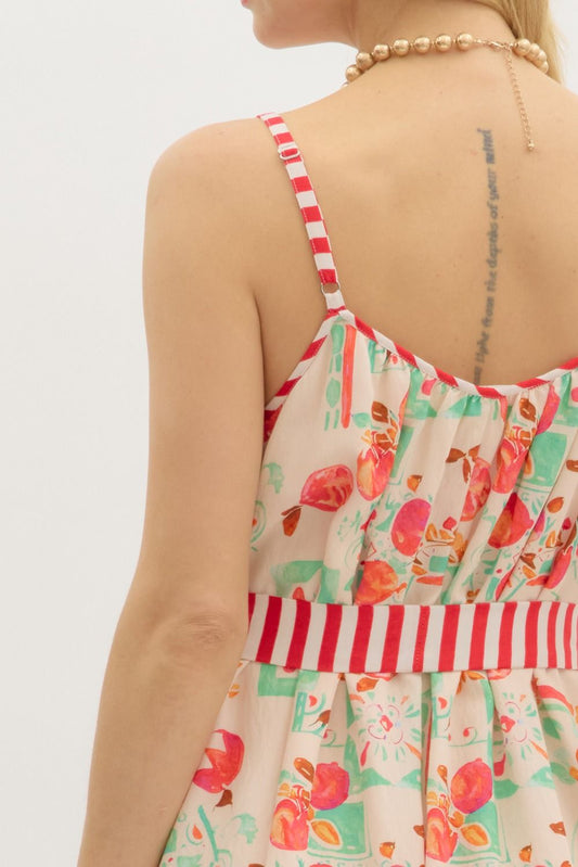 Multi-Print Adjustable Strap Pullover Midi Dress w/ Stripe Accent Pockets