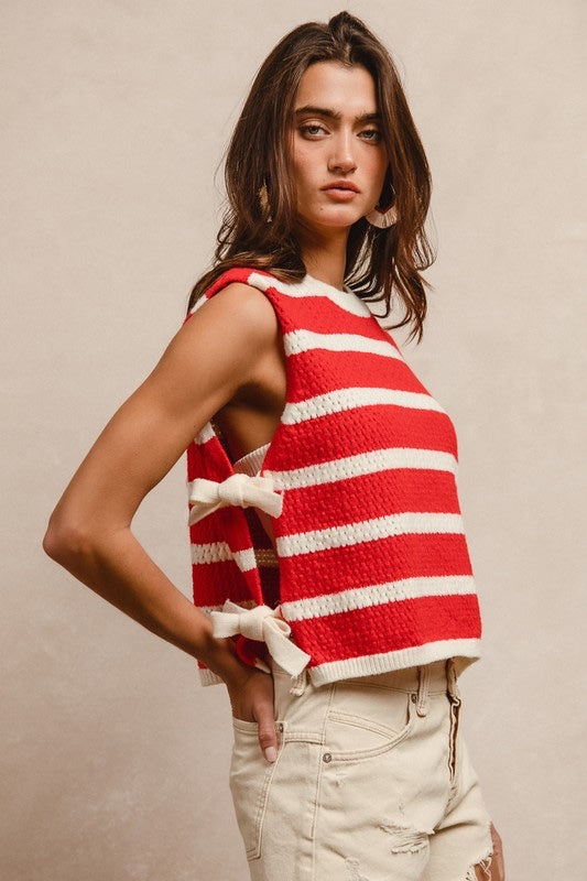 Textured stripe side tied vest top