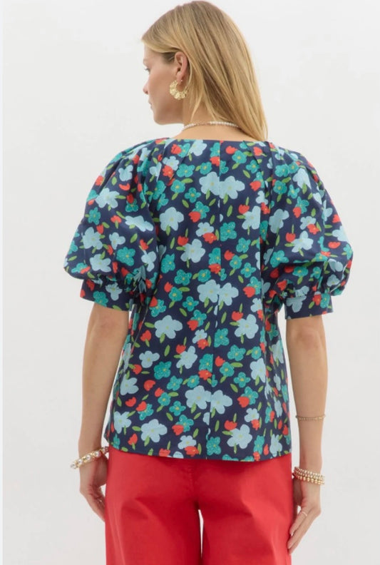 Printed navy short sleeve top