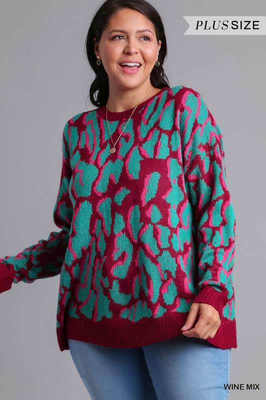 Cheetah Print Mock Neck Long Sleeve Sweater w/ Drop Shoulder