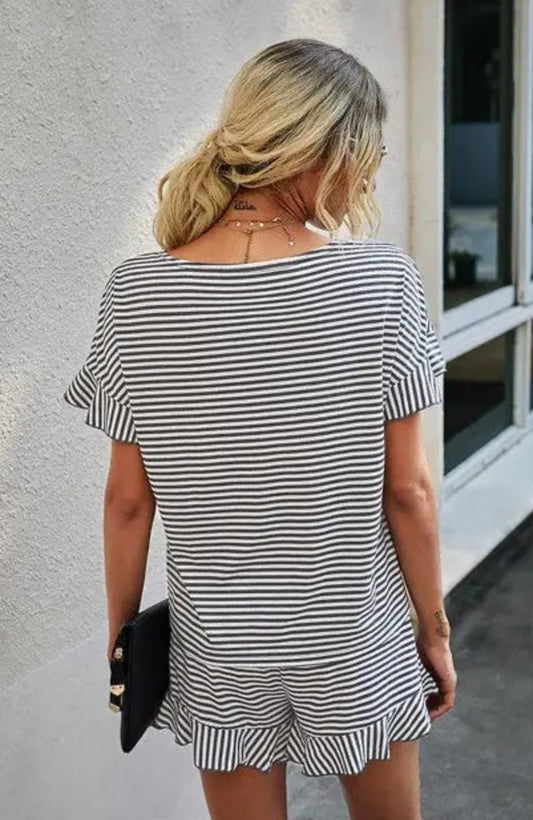 Sold outV Neck Striped Long Sleeve 2 Piece